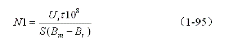 (1-95)式就是計(jì)算單激式開關(guān)電源變壓器初級線圈N1繞組匝數(shù)的公式。式中,N1為變壓器初級線圈N1繞組的最少匝數(shù),S為變壓器鐵心的導(dǎo)磁面積(單位:平方厘米),Bm為變壓器鐵心的最大磁感應(yīng)強(qiáng)度(單位:高斯),Br為變壓器鐵心的剩余磁感應(yīng)強(qiáng)度(單位:高斯),Br一般簡稱剩磁,τ = Ton,為控制開關(guān)的接通時(shí)間,簡稱脈沖寬度,或電源開關(guān)管導(dǎo)通時(shí)間的寬度(單位:秒),一般τ取值時(shí)要預(yù)留20%以上的余量,Ui為工電壓,單位為伏。式中的指數(shù)是統(tǒng)一單位用的,選用不同單位,指數(shù)的值也不一樣,這里選用CGS單位制,即:長度為厘米(cm),磁感應(yīng)強(qiáng)度為高斯(Gs),磁通單位為麥克斯韋(Mx)。