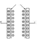 圖一為超級電容器的模型,超級電容器中,多孔化電極采用活性炭粉和活性炭和活性炭纖維,電解液采用有機電解質(zhì),如丙烯碳酸脂(propylene carbonate)或高氯酸四乙氨(tetraetry lanmmonium perchlorate)。工作時,在可極化電極和電解質(zhì)溶液之間界面上形成的雙電層中聚集的電容量c由下式確定: