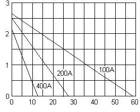 由于等效串聯(lián)電阻(ESR)比普通電容器大,因而充放電時ESR產(chǎn)生的電壓降不可忽略,如2.7V/5 000F超級電容器的ESR為:0.4mΩ,在100A電流放電時的ESR電壓降為40mV占額定電壓的1.5%,在950A電流放電時的ESR電壓降為380mV占額定電壓的14%,表明在額定電流下放電容量將為額定容量減小88.5%,這一特性將在圖3中看到。