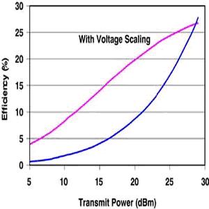 動態(tài)/可適性電壓調(diào)整技術(shù)(DVS/AVS)與高整合度組件所使用的方式很類似,它會把閉回路系統(tǒng)中的處理器和穩(wěn)壓器連結(jié)在一起,并在確保系統(tǒng)正常工作的情形下,將數(shù)字電源供應(yīng)的輸出電壓動態(tài)調(diào)整至最小值。功率放大器會被最佳化,使它在最大傳送功率下?lián)碛凶罡咝?。由于絕大多數(shù)手機(jī)都在基地臺附近工作,手機(jī)的無線電功能會在維持通訊質(zhì)量的前題下,將傳送功率降至最低水平。當(dāng)功率放大器在較低的功率水平下工作時,它的效率會受到影響,從(圖三)可以看出,利用動態(tài)電壓調(diào)整技術(shù)來調(diào)整功率放大器的電壓,它的工作效率會增加10%至20%。