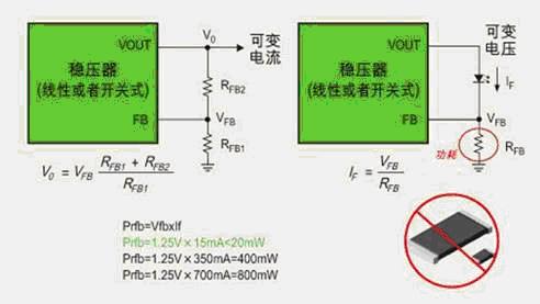 一般來說,DC/DC穩(wěn)壓器對VFB的變化有一個感知的范圍,一旦LED選定,其工作電流IF的大小也就確定了,所選的電阻要保證VFB落在DC/DC穩(wěn)壓器容許的范圍內(nèi)。