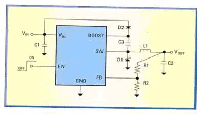 圖2:在FB反饋端和RFB之間放置一個運(yùn)算放大器以降低功耗。