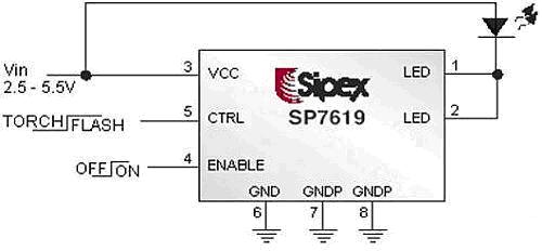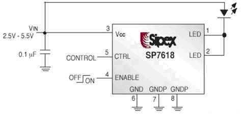 另外,隨著LED技術的改進,F(xiàn)lash LED的工作電壓(Vf)也會越來越低,Vf值在3.4V以下的Flash LED很快會推出,而目前手機鋰電池的關機電壓一般在3.5V,所以日后在閃光燈的解決方案中將不再需要升壓方式,因此Sipex公司推出一批線性的控制 器件,如SP7618和SP7619/SP7619A。
