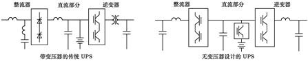 圖7傳統(tǒng)UPS與無變壓器UPS結(jié)構(gòu)對比圖