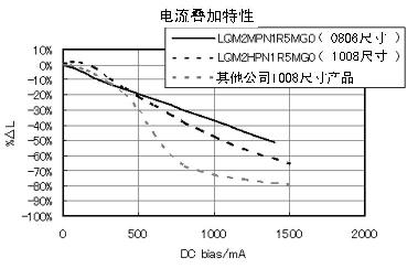 如同圖4中顯示的Rac特性,LQM系列產(chǎn)品能夠充分抑制Rac。同時,圖2的電流-感值偏執(zhí)特性中顯示,它在電流通電時也能確保高感值,擁有良好的電力變換效率特性。這些性能能夠?qū)崿F(xiàn)手機在待機狀態(tài)下的高電力變換效率,對延長電池壽命做出貢獻。