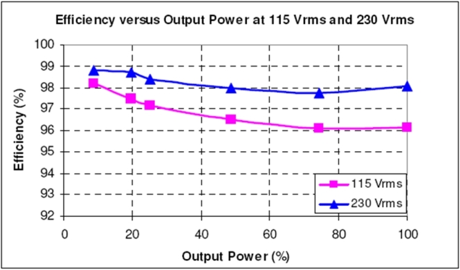經(jīng)測試,這原型在90Vrms、滿載、無風(fēng)扇(機(jī)箱打開,室溫)條件下的能效達(dá)94%,而在100Vrms時達(dá)95%。在20%負(fù)載時能效更接近或超過96%。這種無橋PFC架構(gòu)將是適合大功率應(yīng)用的一種極高能效的解決方案。