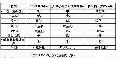 對于可滿足手機內(nèi)部電源轉(zhuǎn)換需求的不同電壓穩(wěn)壓器,我們必須認真考慮它們的優(yōu)缺點(見表1)。目前有三種選擇:線性LDO穩(wěn)壓器、無電感型開關(guān)穩(wěn)壓器(亦稱為充電泵)以及傳統(tǒng)的開關(guān)穩(wěn)壓器(基于電感器)。