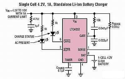 LTC4052需要一個電流受限的墻上適配器,以控制充電電流的大小。它還需配備過流保護電路,以便在意外使用較高電流或墻上適配器發(fā)生故障時能提供保護。LTC4052是一款全集成的脈沖充電器,無需使用外部MOSFET或阻流二極管(見圖3)。這款獨立的充電器IC具有C/10檢測、充電狀態(tài)指示、充電結(jié)束定時器、墻上適配器檢測及過流保護等功能。LTC4052的輸入電源可以是4.5V到12V,并具有1%的飄移電壓精度。