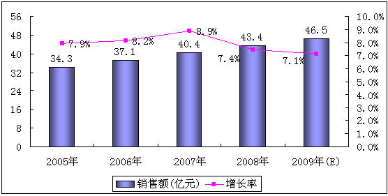 2008年,中國通信電源市場實現(xiàn)銷售額43.4億元,同比增長7.4%,增長幅度較2007年略有下滑。2009年,隨著中國3G網(wǎng)絡(luò)建設(shè)的開展,中國通信電源市場有望保持穩(wěn)步增長,市場銷售額有望達到46.5億元。
