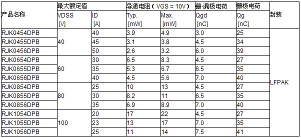 (1)柵-漏極電荷比瑞薩早期的產(chǎn)品約低50%(電壓容差為100V的RJK1056DPB)