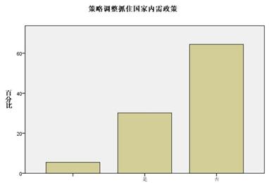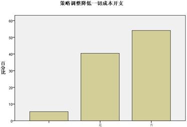調(diào)查顯示,在危機影響中,企業(yè)做出了降低一切成本開支,重新調(diào)整供應(yīng)商、加大市場開發(fā)力度,調(diào)整客戶群,抓住國家內(nèi)需政策等一系列戰(zhàn)略性政策調(diào)整,其中,企業(yè)本身的調(diào)整降低一切成本開支和加大市場開發(fā)力度成為最重要部分,分別占40.4%和54.8,正所謂內(nèi)因決定外因,從主要矛盾出發(fā)。而在外因當中,在重新挑選供應(yīng)商、調(diào)整客戶群和抓住國家內(nèi)需政策上,企業(yè)的選擇比例分別是15.1%,36.3和30.1%。(如下列組圖所示)