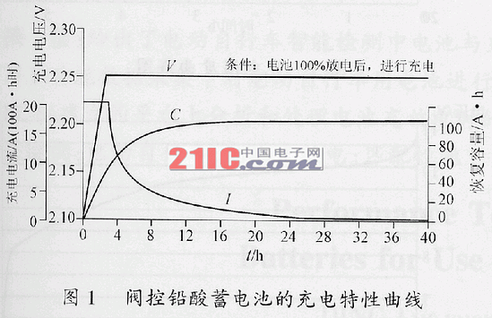 以國內(nèi)外使用最多也最為普遍,研究分析也最為深刻的鉛酸蓄電池為例。請觀察一幅在研究閥控式鉛酸蓄電池技術(shù)方面,經(jīng)常看到和用到的圖1。這里我們要說明的是,這幅圖是專家們拋開日常環(huán)境溫度變化對蓄電池充電過程的影響,用經(jīng)過改進(jìn)的恒壓限流方法對蓄電池充電所獲得的。因是恒壓限流充電方式,所以代表電流變化的I線,起始段有一小段是限流值。代表電壓的V線起始段是一段很陡的上升線,更確切地講由于充電器的限流作用應(yīng)是電壓的下跌線。