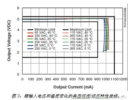 圖2是一款5W通用輸入恒壓/恒流(CV/CC)充電器/適配器的電路設(shè)計圖。本設(shè)計適用于手機(jī)電池充電器、USB充電器或任何有恒壓/恒流特性要求的應(yīng)用。該電路可為最高1A的負(fù)載提供5V恒流輸出,精度為±5%。當(dāng)需要更大負(fù)載時,電源將進(jìn)入恒流模式,輸出電壓降低,使輸出電流維持在1A±10%。