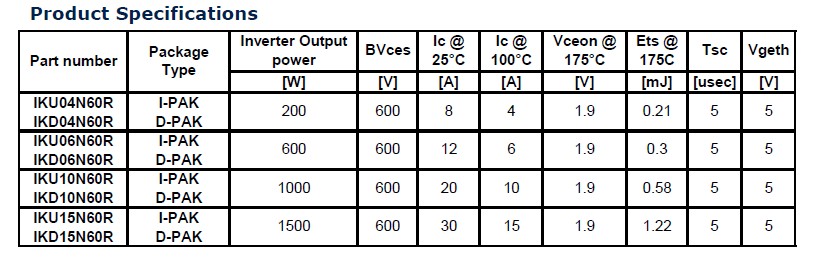 這個是英飛凌IGBT命名的方式,I就是英飛凌。因?yàn)橛w凌之前是從西門子獨(dú)立出來,所以一些老的產(chǎn)品可能還會沿用這種S開頭的。D是指它的定義,IGBT的類別,K就是這種硬開關(guān)的IGBT,H是軟開關(guān)的IGBT,G就是只有IGBT而沒有二極管的這種IGBT。我們有一款軟開關(guān)的IGBT是專門針對電磁爐的電磁感應(yīng)加熱的應(yīng)用,這一款也是相當(dāng)?shù)牟诲e,有機(jī)會大家可以嘗試一下。另外D是它的封裝形式,D是DPARK的封裝,W是TO240,P是TO220,04是它的一個電流等級,這個電流是在100度的情況下測出來的,N是N溝道,60是它的最大電壓,比如60就是600V,R就是指它的第幾代產(chǎn)品或者是哪一種系列,然后R就是逆向?qū)ㄐ虸GBT中的R2、R3。