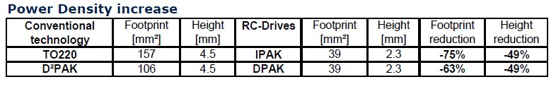 從功率密度來說如果選用這種小封裝的IPARK產(chǎn)品去取代TO220封裝的話,面積可以減少75%,高度可以減少49%。而用這種DPARK封裝產(chǎn)品的話,如果去取代D2PARK這種產(chǎn)品,它的面積可以減少63%,高度同樣可以減少到49%。