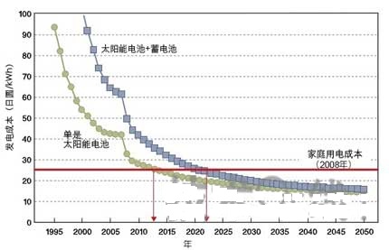 - 預(yù)估大約2022年,配有蓄電池的家用太陽能發(fā)電系統(tǒng)將達(dá)到與市電同價(jià)