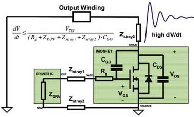 圖7柵極驅(qū)動(dòng)器電路中的寄生阻抗