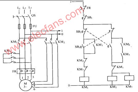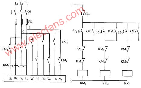顯然,這套線路任何一種速度要轉(zhuǎn)換到另一種速度時(shí),必須先按下停止按鈕,因?yàn)槿齻€(gè)接觸器之間是電氣互鎖的。