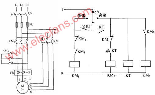 2、雙速三相交流異步電動(dòng)機(jī)自動(dòng)控制變極調(diào)速線路
