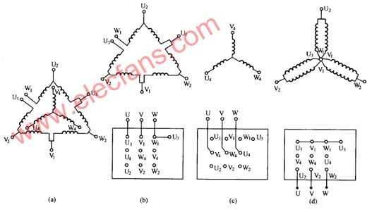 雙速電動(dòng)機(jī)定子繞組的結(jié)構(gòu)及接線方式如圖所示。