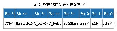 DS3232/DS3234在用戶可編程寄存器中提供了一個域,允許用戶延長溫度更新的時間,從而降低平均電流損耗。兩款器件在控制/狀態(tài)寄存器中提供C_Rate位,用來設置四種不同的溫度更新周期。寄存器定義如表1所示。
