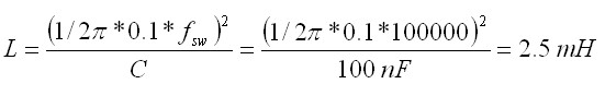 根據(jù)電磁干擾的屬性及濾波器元件的復雜特性,電容C1和C2起始選擇了100 nF電容。選擇的差分電感L1用于提供L-C濾波器頻率,約為開關(guān)頻率的1/10。所使用的電感值是: