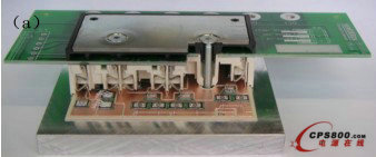 圖3不同功率模塊的剖面圖;(a)標(biāo)準(zhǔn)IGBT半橋模塊;(b)智能功率模塊(IPM),包含半導(dǎo)體芯片、絕緣材料、帶保護(hù)傳感器的驅(qū)動器、電流傳感器和散熱器。