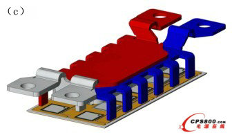 圖5不同壓接系統(tǒng)的對比:(a)MiniSKiiP壓力接觸;(b)SKiiP橋元件;(c)帶壓接軌的SKiM