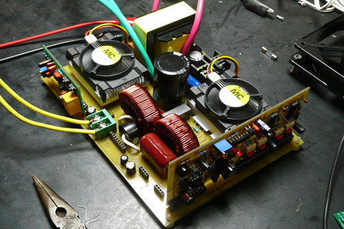 讓機(jī)器空載工作一段時間,如果沒有出現(xiàn)意外,可以把高壓保險(xiǎn)絲換成2A的,慢慢加大負(fù)載,一般是100W,200W,400W,一步一步地加,每加一點(diǎn)讓機(jī)器老化一段時間,同時要密切注意前級功率管的溫升,如果溫度過高,要查出原因。