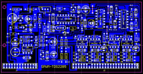 1.SPWM的驅(qū)動核心采用了單片機(jī)SPWM芯片,TDS2285,所以,SPWM驅(qū)動部分相對純硬件來講,比較簡單,制作完成后要調(diào)試的東西很少,所以,比較容易成功。