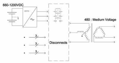 過采用可分離的兩極+600和-600VDC電池組數(shù)組實現(xiàn)直接轉(zhuǎn)換這項新技術(shù),無需在低壓三相電網(wǎng)上配備變壓器。這種配置不僅提高了發(fā)電效率,而且不需要傳統(tǒng)上所要求使用的逆變器變壓器,降低了相關(guān)的系統(tǒng)平衡(BoS)成本,還避免了與單極配置有關(guān)的不必要的線路衰減。這項技術(shù)還為電力集成商和公用電力事業(yè)機構(gòu)的大型商業(yè)或公用安裝項目帶來了更多好處。例如,通常規(guī)模在1到2兆瓦的商業(yè)項目,在連接點位于大樓入口變壓器低壓側(cè)要求配有一至八個逆變器,并且每個逆變器都要配有單獨的、定制的隔離變壓器——即使變壓器已與逆變器集成。而真正的無變壓器設(shè)計的逆變器才能支持直接的連接,不需要任何其它的變壓器設(shè)備和定制修改,而且也不會產(chǎn)生系統(tǒng)平衡成本。對于那些中壓變壓器連接點在5到12.7千伏之間的公用安裝項目,可將多個無變壓器逆變器整合成一個大小適當(dāng)?shù)臉?biāo)準(zhǔn)中壓變壓器。變壓器可以放在電場的任何位置,以靠近逆變器是最合適的。