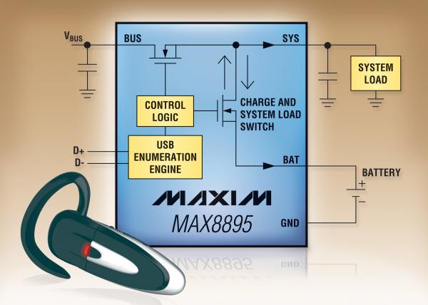 Maxim推出線性電池充電器MAX8895,器件適用于符合USB電池充電規(guī)范(1.1版本)的Bluetooth®耳機(jī)和便攜設(shè)備。MAX8895獨(dú)特地集成了自動適配器檢測功能,可分辨USB設(shè)備、USB充電器和專用充電器。器件還具有USB枚舉功能,可自動與USB主機(jī)進(jìn)行交互,無需處理器干預(yù)即可優(yōu)化充電電流。該功能無需使用單獨(dú)的微控制器和系統(tǒng)軟件,因而可提供業(yè)內(nèi)僅有的單機(jī)運(yùn)行充電方案。