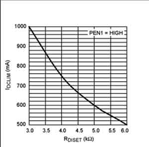 充電速度由下面幾個因素決定:電池電壓、USB/DC輸入電流限制、充電電流設(shè)置電阻(RCISET)、ISYS以及管心溫度。MAX8671X為了防止輸入過載和過熱,可自動將充電電流降至某個低于所設(shè)置的充電速率的數(shù)值。