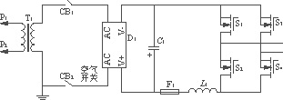 從圖3可以看出,為了防止主電路整流側(cè)過流損壞,在變壓器副邊設(shè)置了空氣開關(guān)。在此需要說(shuō)明的是,此開關(guān)不能設(shè)置在變壓器原邊,以避免因勵(lì)磁涌流而誤動(dòng)作。在逆變部分還加入了小電感,以防止電流變化造成的損壞,串入快速熔斷器作為晶體管過電流保護(hù)的后備保護(hù)。