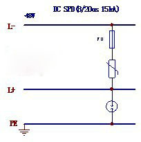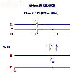 對(duì)于站內(nèi)組合電源系統(tǒng)的防雷,其防雷電路比較簡(jiǎn)單,也比較成熟,根據(jù)‘郵標(biāo)’,在組合電源系統(tǒng)交流側(cè)采用通流容量為40kA(8/20μS波形)的 “3+1”方式的交流C級(jí)防雷器,在組合電源的直流側(cè)采用通流容量為15kA(8/20μS波形)的“1+1”方式的直流防雷器即可。
