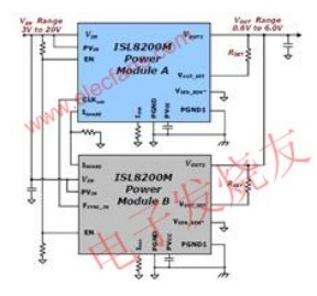 一旦在設(shè)計(jì)中采用了像ISL8200M的電源模塊,就能夠迅速并聯(lián)6個(gè)模塊,實(shí)現(xiàn)高達(dá)60A的功率,這將加速未來(lái)的設(shè)計(jì),或迅速適應(yīng)設(shè)計(jì)周期過(guò)程中設(shè)計(jì)要求的變化。