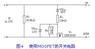(3)選擇VDZ4的穩(wěn)壓值以防止在輸入電壓低于28V時(shí)開啟V3。