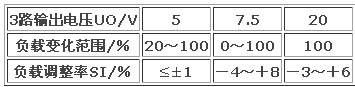 2)多路輸出,穩(wěn)壓性能好,在最壞的情況下,各路輸出的負(fù)載調(diào)整率指標(biāo)見表1,