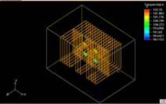 散熱面積A=0.66 2 m ,求得Δt= Q/( h ηA)=51.2566 °C。肋片溫度t 等于環(huán)境溫度與溫升Δt之和,即t=50+51.2566=101.2566°C;這表明,所設計的散熱器在自然冷卻的散熱方式下,略高于器件的溫升要求,下面我們再借助ICEPAK對散熱器的參數(shù)進行優(yōu)化,并采用強迫風冷,以期得到更低的肋片溫度。