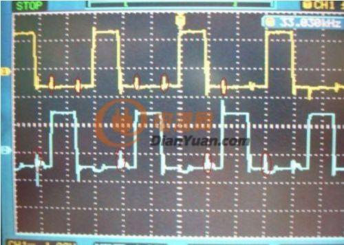 由于大部分逆變器的MOS管驅動部分的供電與主振蕩IC一樣,都為單電源供電(用SG3525輸出直驅管MOS的也不少見),因此驅動波形以0V~+15V方波為多見,此時驅動波形如受到干擾(見上圖尖刺部分),如接近達到MOS管的Vth值,則對系統(tǒng)的不良影響自不用多說,起碼也會影響效率與溫升。如采取一般的手段無法有效減低或避免這種干擾時,采用負壓關斷也就很有必要了。這個問題在專業(yè)的量產(chǎn)方案中,應引起足夠的重視。