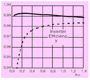 歐洲效率的改善所帶來(lái)的經(jīng)濟(jì)效益也很容易通過(guò)計(jì)算得到。例如以一個(gè)額定功率3kw的光伏逆變器為例,根據(jù)現(xiàn)在市場(chǎng)上的成本估算,光伏發(fā)電每千瓦安裝成本大約需要4000歐元[2],那也就意味著光伏逆變器每提高歐效1%就可以節(jié)省120歐元(光伏發(fā)電現(xiàn)在的成本大概在每千瓦4000歐元,或者說(shuō)每瓦 4歐元,包括太陽(yáng)能電池和光伏逆變器,對(duì)于一個(gè)3kw的發(fā)電裝置,如果逆變器效率提高了1%,也就是說(shuō)多發(fā)了30w,那么成本就可以節(jié)省4×30=120 歐元)。提高光伏逆變器的歐洲效率帶來(lái)的經(jīng)濟(jì)效益是顯而易見(jiàn)的,“不惜成本”追求更高的歐效也成為現(xiàn)在光伏逆變器發(fā)展的趨勢(shì)。
