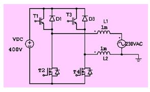 由于上橋臂的igbt工作在50hz的開(kāi)關(guān)頻率下,實(shí)際上并不需要對(duì)該支路進(jìn)行濾波。因此對(duì)電路拓?fù)溥M(jìn)行優(yōu)化,可以得到圖14所示的發(fā)射極開(kāi)路型拓?fù)?。這種拓?fù)涞膬?yōu)點(diǎn)是只有有高頻電流經(jīng)過(guò)的支路才有濾波電感,從而減小了輸出濾波電路的損耗。