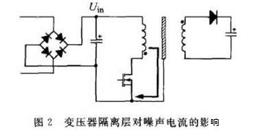 開關(guān)電源電路中的噪聲活躍節(jié)點是電路中的共模噪聲源。要降低開關(guān)電源的傳導干擾水平,實際上是減小共模電流強度、增大噪聲源的對地阻抗。在傳統(tǒng)的隔離式EMC設(shè)計中,隔離層連接到電路中電位穩(wěn)定的節(jié)點上(如:變壓器前級的負極)要比直接連到地線對EMI干擾的抑制更有效。