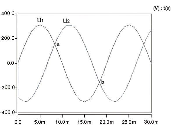 圖1 兩相正弦電壓波形