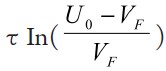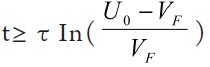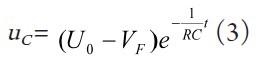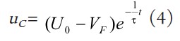 根據(jù)初始條件u C ( 0 + ) -V F =uC (0-)-VF =u0 -VF,并令式(2)的通解為uC -VF = Aem ,得該一階齊次微分方程的解為: