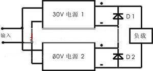 220V交流電壓經(jīng)整流和濾波后得到320V左右的直流電壓,加至電源模塊輸入端。單DC-DC模塊的最高輸出電壓一般為+48V,要得到+60V的直流輸出電壓,必須采用模塊串聯(lián)的方法得到。設計采用兩塊PH600S280-28 DC-DC模塊(調至+30V輸出),通過串聯(lián)得到+60V的輸出電壓,如圖1所示。