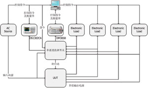 典型的AC/DC電源測試系統(tǒng)包含了程控交流電源、程控電子負(fù)載、高精度數(shù)字萬用表、數(shù)字示波器、多通道程控開關(guān)以及工控機(jī)和測試軟件。