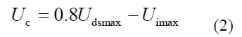 輸入電壓最大值為 Uimax ,開關(guān)管的最大耐壓值為 U dsmax,考慮80%的降額使用系數(shù),則電容 C c兩端電壓Uc 的大小可由式(1)確定。