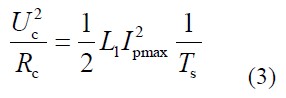 為保證電容 Cc 兩端電壓紋波足夠小,需RcCc >>Ts ,取10 倍關(guān)系,則電容 C c的大小由式(3)確定。