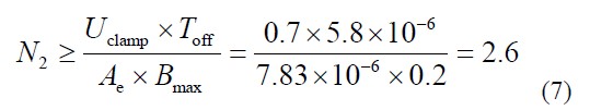 漏感存儲的能量完全被電阻Rc 消耗,則電阻 Rc 的大小可由式(2)確定。